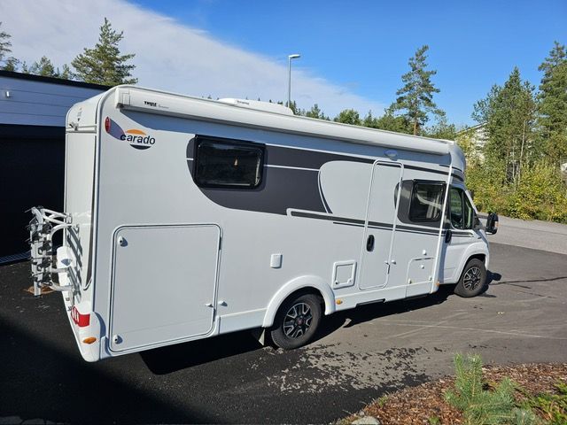 Rekisteröity 5:lle Makuupaikat 6:lle. Automaatti, 9 Vaihteinen. Vakionopeudensäädin. Ilmastointi. Lattialämmitys. Truma 6e Combi sähkö/kaasu. Multimediasoitin. Peruutuskamera. Laskettava parivuode. Iso takatalli. Pyöräteline 4:lle pyörälle.