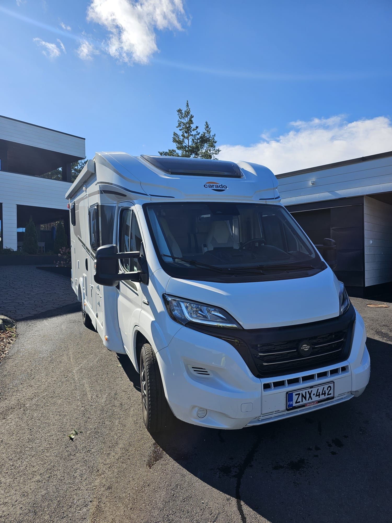 Aurinkopaneelit, 2x ilmastointi asuntopuolella oma.vakionopeuden säädin, smart tv, wc ja suihku erikseen, katosta laskeutuva parisänky, ruokailuvälineet,ulkopöytä ja tuolit,pyöräteline,lattialämmitys, 1800w inventteri.
